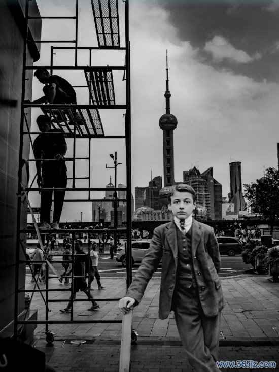 一个1910年的少年,站在上海东方明珠的街头。这么一幅拼贴的瑕瑜“照相”作品,让不雅众感受到时光交错的钤记。